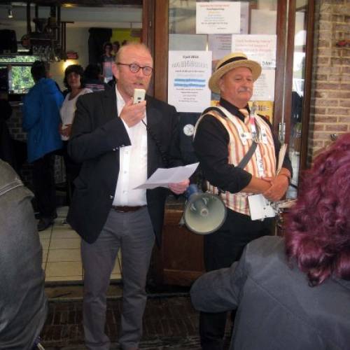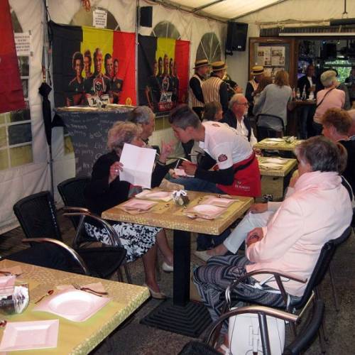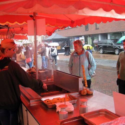 Een zeer druilige dag, regen vanaf 10.30 uur opening in de tent van De Croone. Toen het even over was ambiance op het kerkplein. Zie de foto's